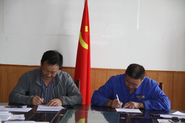 首先,由集团公司董事长孙刚德分别与总经理李奎锦、副总经理徐宪国、工会主席张菊萍签订了《党建、党风廉政建设、意识形态及群团建设责任目标协议书》。然后由董事长分别与总经理、工会主席签订了《经济责任目标协议书》;总经理李奎锦分别与副总经理和分管单位市场营销部、财务部、企业管理部、综合办公室负责人签订了《经济责任目标协议书》、《安全生产责任目标协议》、与雅布赖染料公司签订《安全生产责任目标协议》;副总经理徐宪国分别与采盐分厂、精盐分厂、生产技术部负责人签订了《经济责任目标协议书》、《安全生产责任目标协议》。