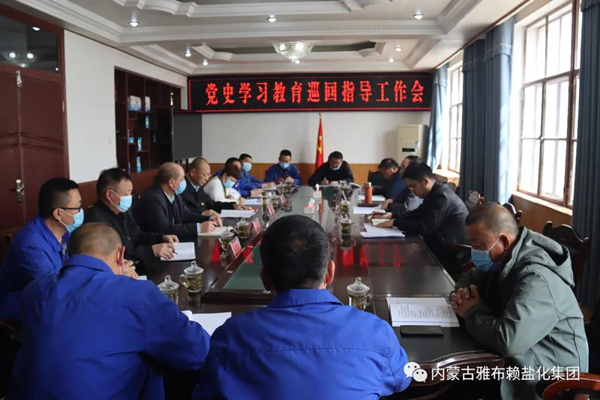 329日下午,旗委党史学习教育第三巡回指导组到雅盐化集团公司指导党史学习教育工作并召开工作会议。旗委党史学习教育第三巡回指导组组长、旗人大常委会党组副书记、副主任庆格勒巴图,旗人大常委会财经委主任赵俊国,旗自然资源局干部张海龙和集团公司中层及以上党员干部参加工作会。集团公司党委书记、集团公司党史学习教育领导小组组长孙刚德主持会议。