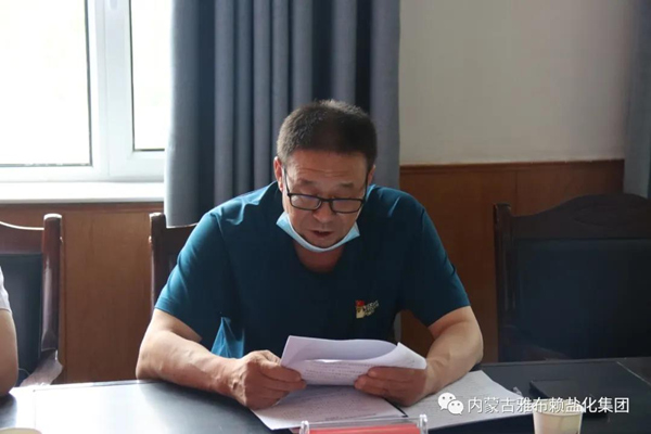 2021810日,精盐党支部召开2021年度党史学习教育专题组织生活会,旗委组织部副部长魏玉强同志、旗委党史学习教育第三巡回组副组长巴图乌拉同志到会指导。支部联系领导集团公司党委副书记、总经理李奎锦同志以普通党员身份参加。会议利用半天时间,深刻检视了支部和党员个人存在的问题、剖析了问题产生的原因,提出努力方向和整改措施,会议达到了预期目的。
