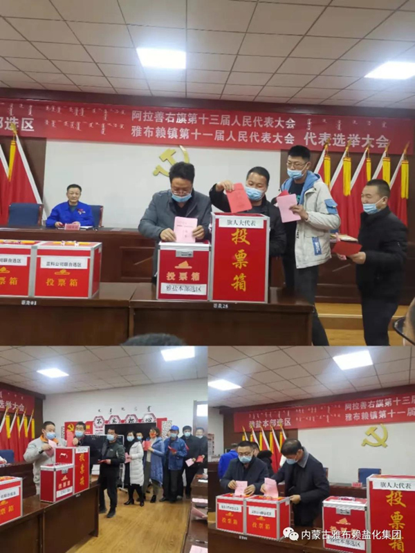 经过两天紧张、严格、有序的投票选举,雅布赖盐化集团公司联合选区顺利选出旗级人大代表3名,镇级人大代表8名。选举结果将由旗、镇人大代表选举委员会审查确认后,依法予以公布。